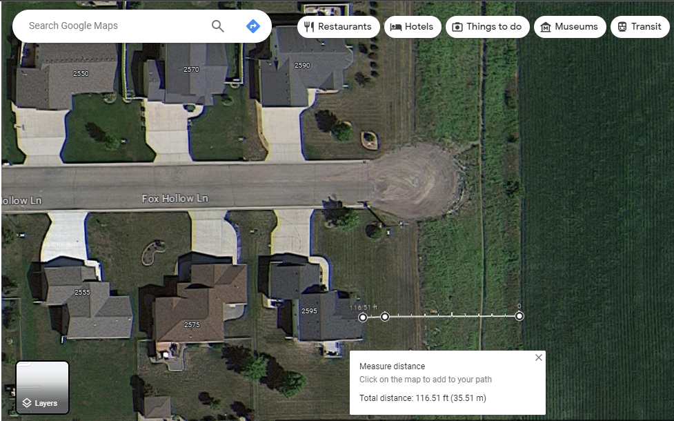 The proposed route in yellow was not intended to be used for a highway after 2004. 34th Ave is just 30 seconds farther east! It provides the safety we all deserve and allows for the much anticipated growth previous iterations of this road promised!